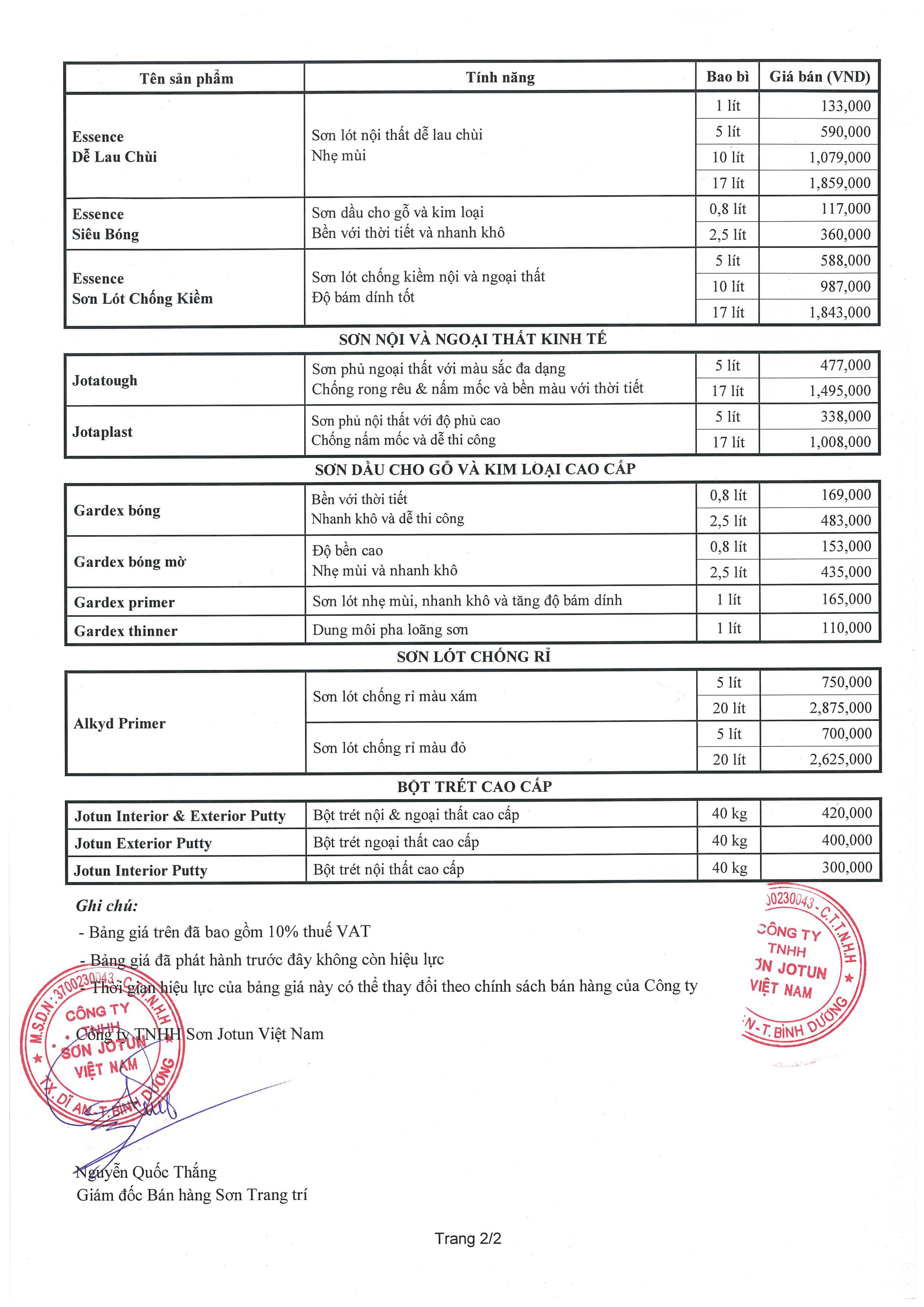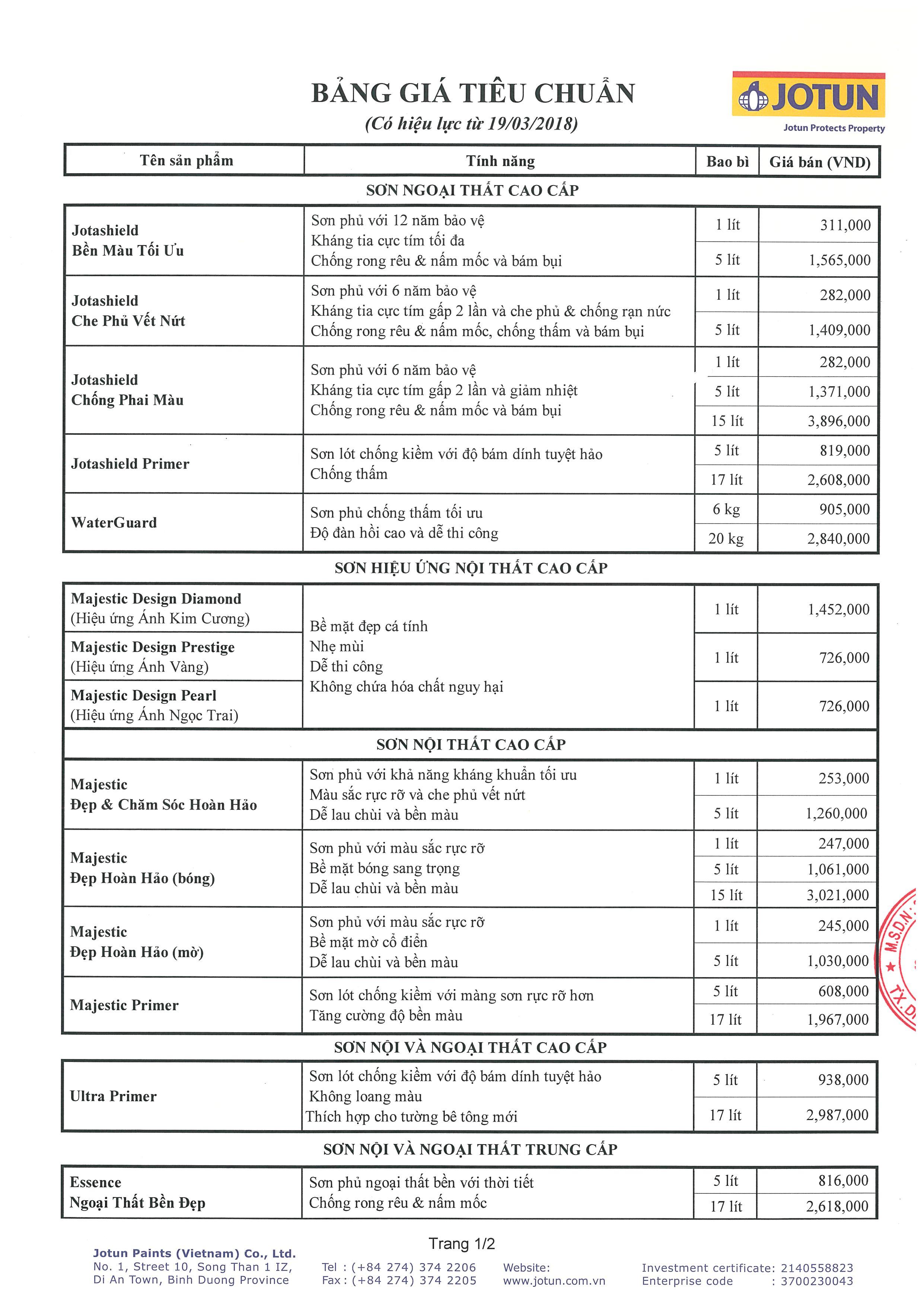 Trung tâm pha màu sơn Jotun HAT Việt Nam xin gửi tới Quý khách hàng bảng báo giá các sản phẩm của Sơn Jotun có hiệu lực từ 29/10/2018